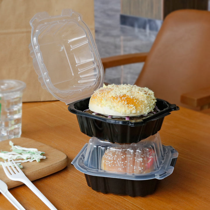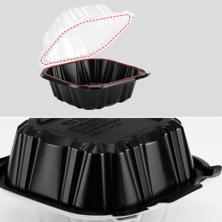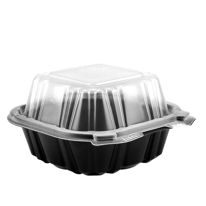 6"x6" 16 oz. 1-Compartment Black Plastic Hinged Take-Out Container - 250/Case
