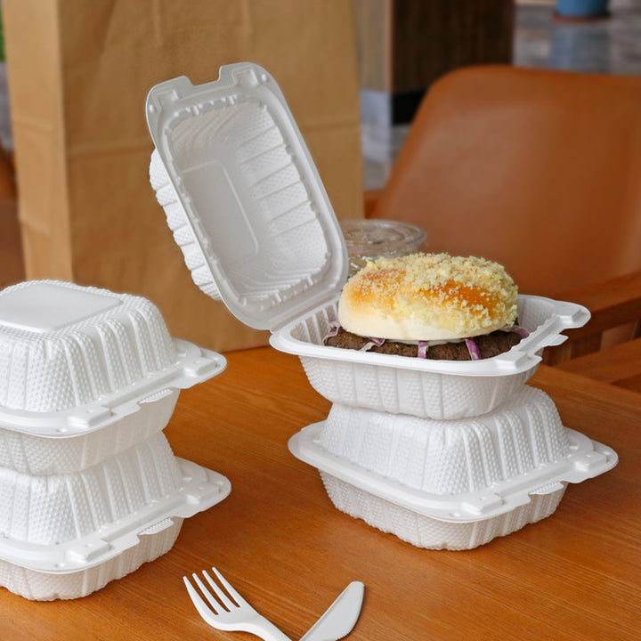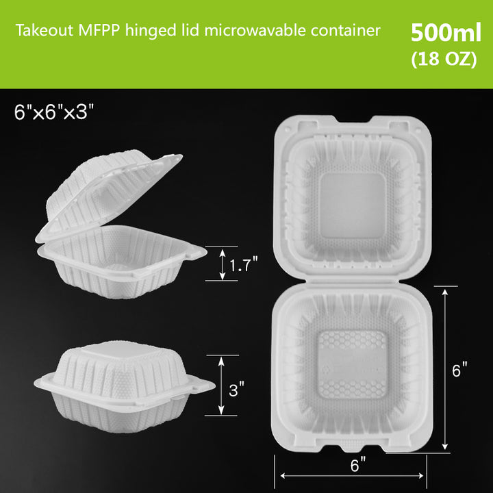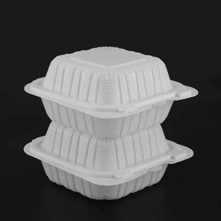 6"x6" 16 oz. 1-Compartment White Mineral-Filled Plastic Hinged Take-Out Container - 250/Case