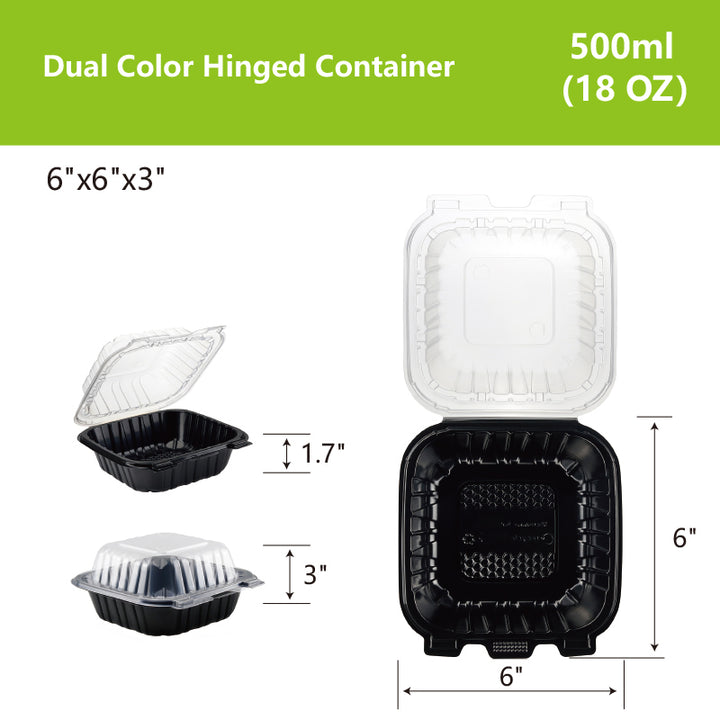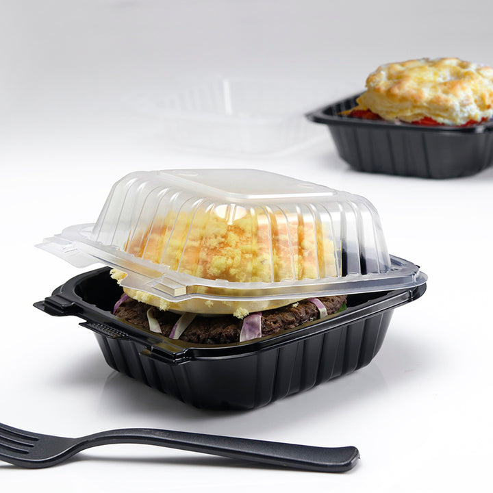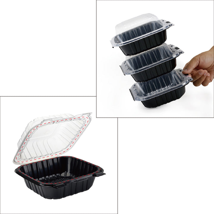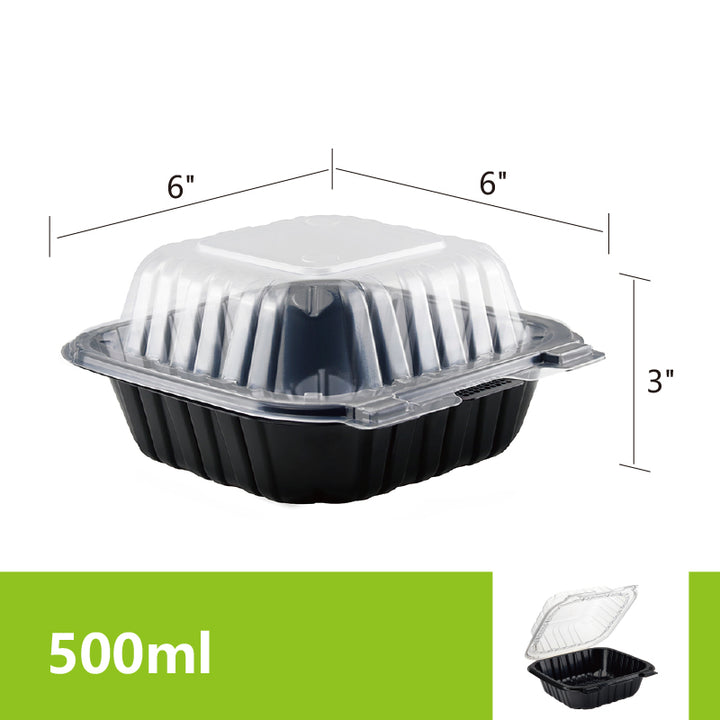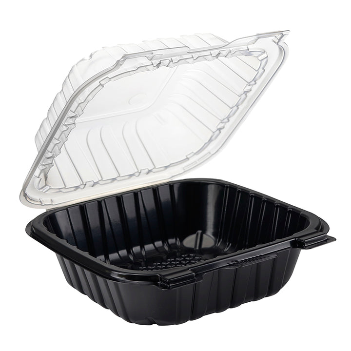 6"x6" 18 oz. 1-Compartment Black Plastic Hinged Take-Out Container - 250/Case