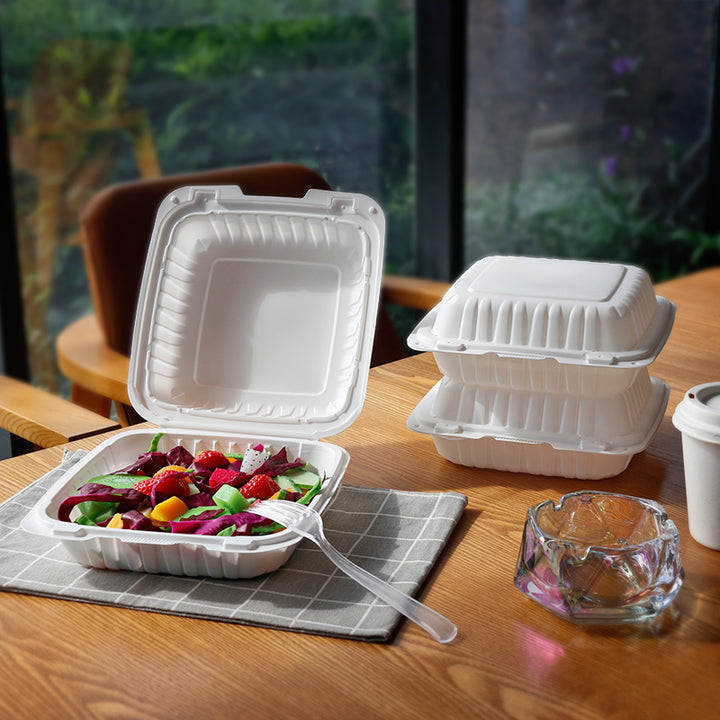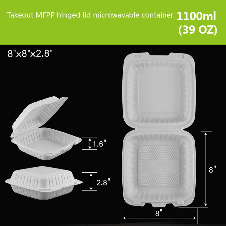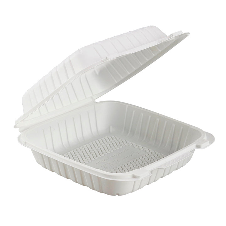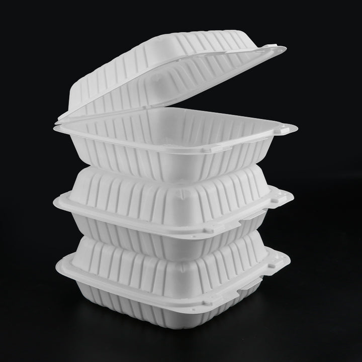 8"x8" 38 oz. 1-Compartment White Mineral-Filled Plastic Hinged Take-Out Container - 150/Case