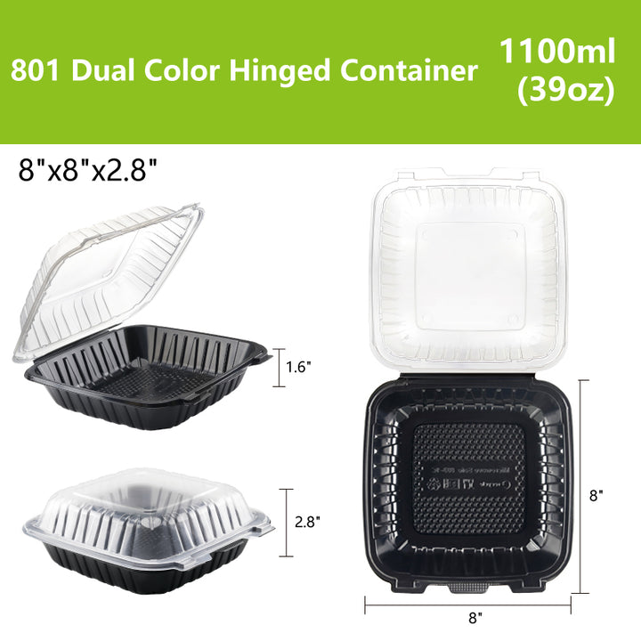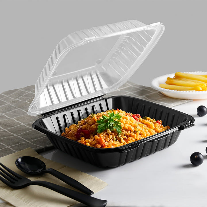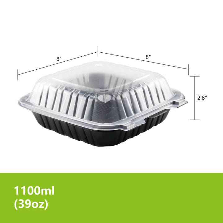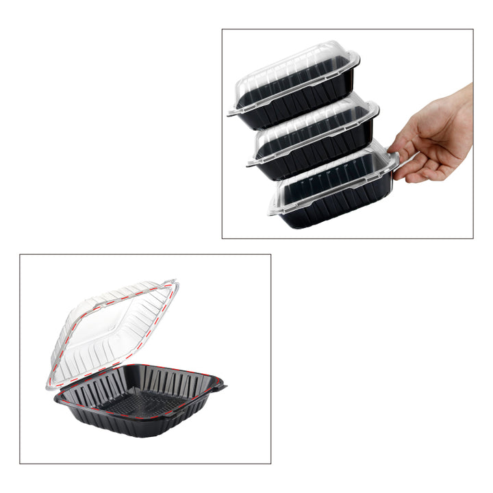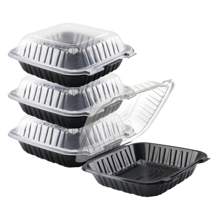 8"x8" 39 oz. 1-Compartment Black Plastic Hinged Take-Out Container - 150/Case