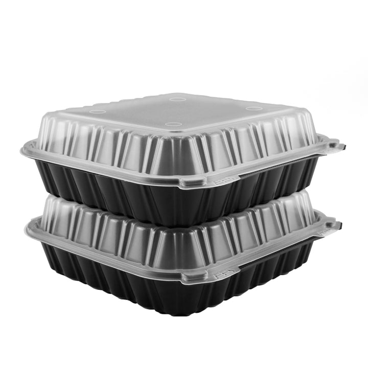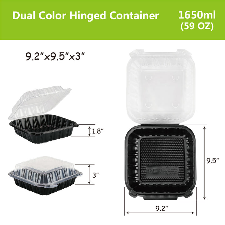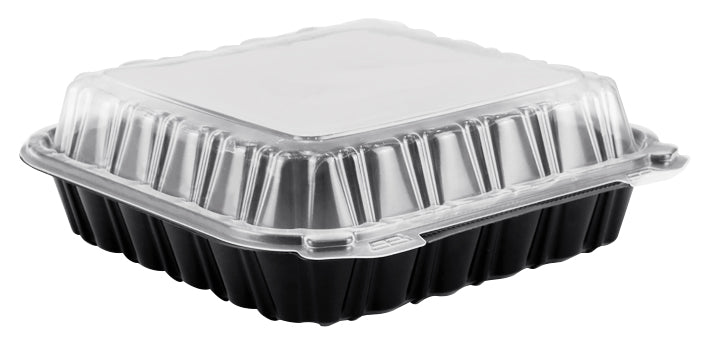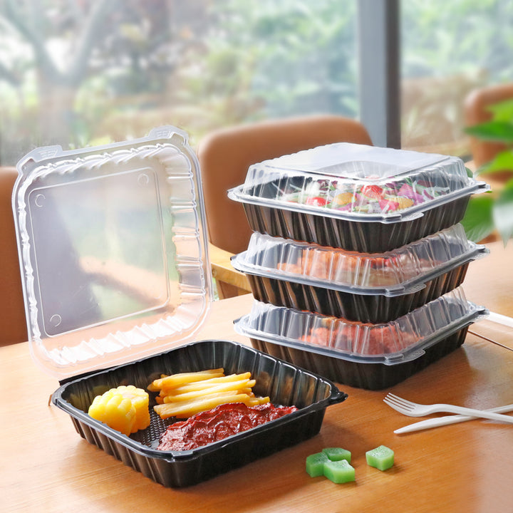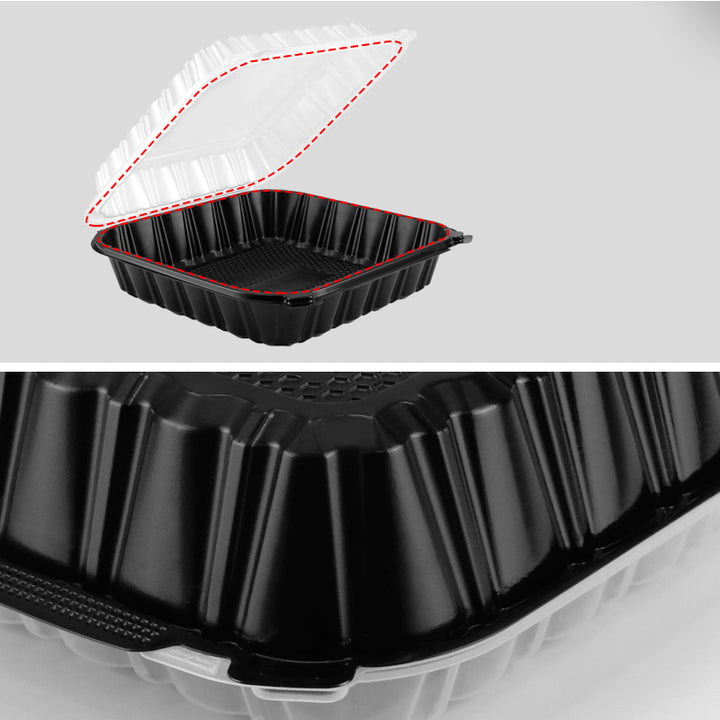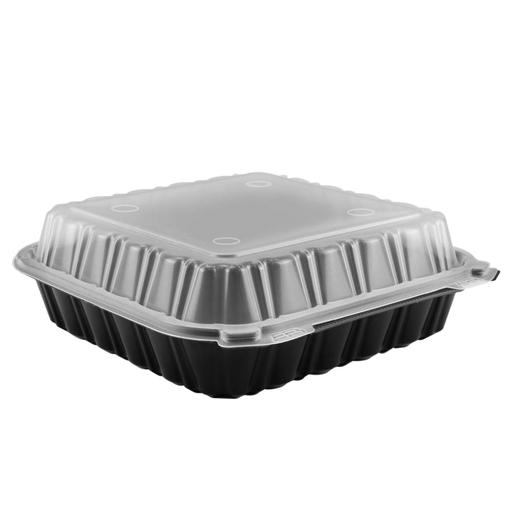 9.2"x9.5" 56 oz. 1-Compartment Black Plastic Hinged Take-Out Container - 100/Case