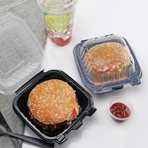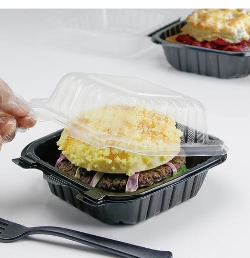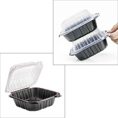 6"x6" 18 oz. 1-Compartment Black Plastic Hinged Take-Out Container - 250/Case